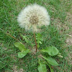 お庭の芝の真ん中でタンポポの綿毛さん 花が終わり 綿が旅立つ前に一枚 笑
