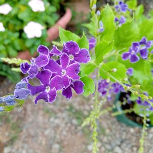 今朝は☀☁ 久しぶりにちょっとだけ、涼しい朝です。 ✿本日の我が家のお花✿ ✨デュランタ宝塚✨ やっとお花が咲いて来ました ⋆⸜(* ॑꒳ ॑* )⸝ なかなか咲かなくて、待ちに待ってたお花💓 1枚目は、昨年の冬越しにかろうじて生きてた子。 2枚目は、去年、大株になっていたデュランタ、大きくなり過ぎて、冬にしまう場所がなく、そのまま放置していたら、枯れた~、、、(っω<。)クゥってなってた😅 、、、鉢から抜き、処分しようかと、思ったんだけど、余りにも幹が固くて、解体できず、裏庭に放置していたら、、、だいぶ後になってから、葉っぱが出てきて、、ฅ(º ロ º ฅ)ビックリ‼️‼️ 絶対枯れたと思ってた😅 結局、暑くていまも、そのまま放置してる(笑) こちらは、まだ葉っぱのみで、花芽すら出ていない😅あれれ? 小さい鉢の方がお花が咲くのは、早いみたい。 根っこがこれ以上、無理だよ~ってなったら、仕方なく花を咲かせるのかな? 放置組は、まだまだ葉っぱが伸びるっぽい(笑) 今年の冬越しは、また放置、、、でいくかꉂ🤣ꉂ🤣ꉂ🤣 結構、丈夫らしい。