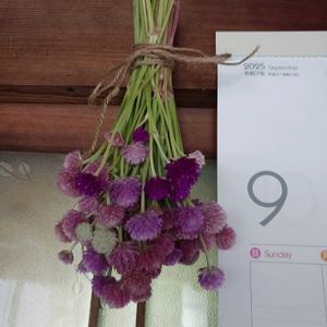 おはようございます🎶 部屋中にセンニチコウを飾ります💞 まだ!咲いているので勿体なくて ドライフラワー作っています🎶🎵 ホームセンターで 100円になっていた デュランタ宝塚💙 枯れても100円ならと思い植えてみましたよ~👍️ 無事に育つと良いなぁ💗