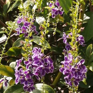 GSの花友さんの ヨッシー☘️さんから頂いたデュランタ宝塚が沢山の蕾をつけて咲いています 濃紫色に白い縁取りが入っていて良い色出してます