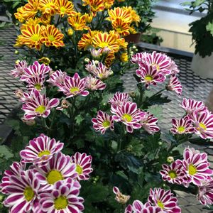 おはようございます🙇♀️ 菊、キク、きく🏵️💮🌼🌸🍀 秋のイメージなのに🤔 近くのスーパーの近くにびっしりと咲いています😍🎶💕
