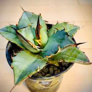 アガベ チタノタ(オテロイ)FO-076 最近流行りの物に比べるとほぼ無個性。 特徴がないのが特徴みたいな…🙄 でも種子外で初めて購入したアガベなので思い入れがあります☺️