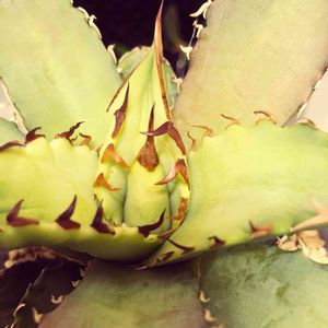 オテロイ・ブルーをじっくり観察してたら、下葉に炭疽病のような模様を発見。 切除した方が良いのかどうしようかと、部屋に持ち込んで蛍光灯の下で見てたら、この子もしかして斑入りじゃないの疑惑が🤔(気のせいか) 取り敢えずカットせず、ベンレート水ぶっかけて様子を見ることにしました。 他のアガベ達にも念の為ぶっかけとこ。