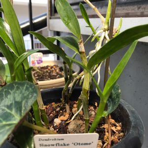 デンファレ。 花も咲かずにもう5年…😂 これどうすれば❓ ミニシクラメンがいつの間にか発芽して、何やらこのまま陣取っていきそう💦💦