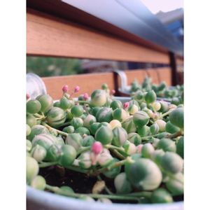 グリーンネックレスさんが、、、😱😱 しわしわになってきてる…💦 先の方は元気なんだけど、根元の方が干しぶどうみたいにしわしわしわ…😭😭😭😭 水不足?水あげすぎ? 水くれの頻度は2週に1回たっぷりあげていて、環境は風通しの良い室内です。。 どうしたら良いのでしょう🙇 教えてください🙇🙇🙇