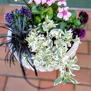 【寄せ植え】 年明け早々に 素敵なブルーの 『エボルベ オーララ!』に 出逢い… 『ビビ クリアライトブルー』 『ロカハーツ バチアナスマイル』と ブルー系の寄せ植えしてみました。 カゴ飛び出して沢山咲いて欲しいなぁ🥰