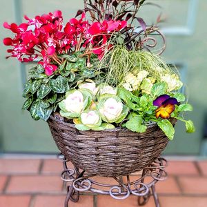 X'masお正月🎄✨寄せ植え シクラメンジックス,ハボタン パンジーパープルムーン, カレックスアマゾンミスト ストロビランテスブルネッティ