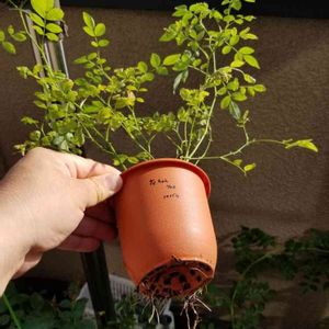 ノイバラ 去年の11月16日に挿し木したノイバラ。 気が付けば鉢底から根が出てました😅 株分けが必要ですね。 ちなみに5本ぐらい3号の鉢に 挿し木をした培養土は、 花ちゃん培養土です。