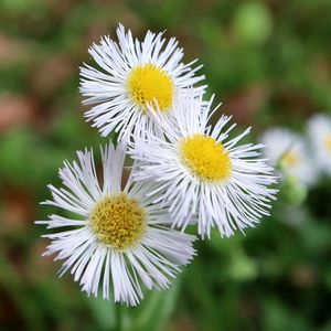 4月27日 今日のお花『ハルジオン』です。 【ハルジオン】 北アメリカ原産、キク科多年草 日本全国の空き地や公園の芝生に自生している帰化植物。 繁殖力が旺盛で生命力がとても強く、環境省の要注意外来生物に指定されている。 草丈:30 - 80センチ、開花期:4~6月 花色:白、ピンク 維新記念公園@山口市