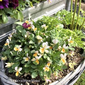 やっと先咲揃ってきた ビオレッタスノーサンライズ❄️☀️ 一面の小輪で優しい色で可愛らしいです 左上は秋からずっとモリモリのフリズルシズル。優秀で愛おしい✨ 週末は雨降りでお庭に出られません、植物には恵みの雨と思って♪