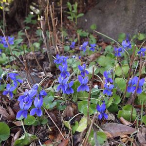 日陰でひっそりと広がっている名無しのすみれさん(私が名前を知らないだけ😅 タチツボスミレなのかな) きれいなブルーで面長さんです☺️