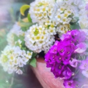 ①②八ヶ岳からの贈り物“ビオレッタ” 薄紫部分がブルーに出ることもあって、素敵なの〜 やっぱり小花が好き♡ ③スイートアリッサム レモン色のアリッサムが大好きで毎年ホワイト&レモンの2色植えを探して購入しています。 ピンク色のアリッサムはあまり合わせたことがないので今度挑戦してみたいです。