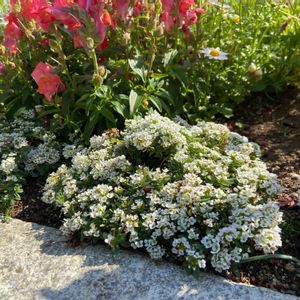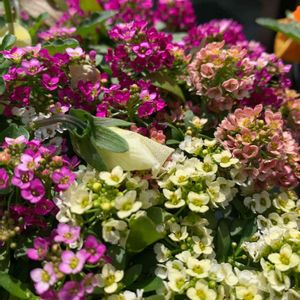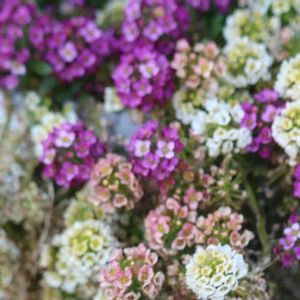 スイートアリッサム覚書き スイートアリッサムは、略して「アリッサム」とも呼ばれますが、両者 実は学名も属名も異なる植物 スイートアリッサムが白、ピンク、紫、赤、アプリコットなどたくさんの色があるのに対して、 アリッサムは鮮やかなイエローのみです。スイートアリッサムにはない色なのですぐに見分けられます。 スイートアリッサムは一年草扱い アリッサムは多年草 そのため、「宿根アリッサム」という名で流通しています。植えっぱなしで毎年芽を出し、鮮やかでかわいらしい花が春を知らせてくれる楽しみがあります。