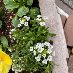 ラナンキュラスの根元に植えてある 💚 スイートアリッサム 💚 2回少し刈り込んだけどまだまだモリモリ✨🌳 一緒に寄せ植えしてたビオラ2種 🌸 ブルーパラダイス 🌸 つぶらなタヌキ は少し前に終わりにしました‧⁺◟( ᵒ̴̶̷̥́ ·̫ ᵒ̴̶̷̣̥̀ )