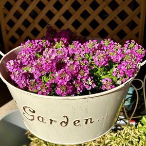 こんばんは✨️ いつもありがとうございます! 今日は2年前に一目惚れしてから毎年お迎えしてるストック ビンテージカッパーを使った寄せ植えです。 シックな花色と葉っぱがシルバーリーフの様な色合いが美人さんだなーって思って😆 先週植え付けて1週間水やりしなかったのでパンジーがぐったりしてしまって💦 今日又撮り直しました😅 気温が低くなると深いピンク色?に紅葉するって書いてあったのでこのストックに合うんじゃないかと思って初めてマジックドラゴンを使ってみました。 これからどんな風に色が変化していくのか凄く楽しみです😊 ウエストリンギアは1年前の寄せ植えで使った物ですが、今年の猛暑も乗り越えて巨大化しました。強いですね💪 ̖́-