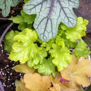 昨日に引き続き ヒューケラ今年お迎えの3種♡ 上は、ヒューケレラ ピンクフィズ ヒューケラとティアレアの交配種でピンクの花が咲くそう💕 真ん中は、フリンジレモン 白い花が咲くそう💕 下のは、キャラメル どの葉色も素敵❣️ ますますヒューケラに夢中✨😍✨