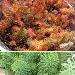 【11月11日スペシャル棒の日 1日遅れ😅】 紅葉してきたミルクブッシュと、誰がなんと言おうと「さそり座の木」 ユーフォルビア プラチクラタが、日本に入ってきてはじめの和名が実生園さん命名のこれでした! 私は「ゾンビ」なんて流通名は認めんからね~~っっ!