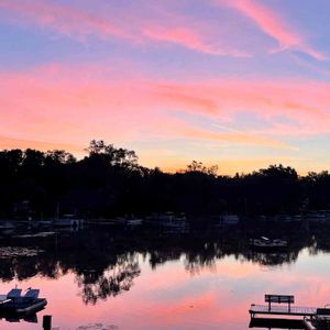 Old Mission Peninsula ④ レストランの順番待ちスペースからマリーナ(地元住人専用)を見る 木陰で順番待ちができるようになっている この日は心地よいそよ風、だったけれど、おそらく風が強く吹き付ける場所 植栽にも厳しい環境だと思う ちなみに食事はとっても美味しくて、再訪リスト入りに