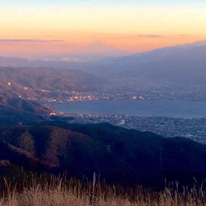 夕陽に染まる富士山 前のpicから1時間程経過した頃でしょうか。諏訪湖の一部にはまだ陽が差しています😊