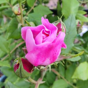 大好きなラレーヌビクトリア。今年は蕾がいっぱいある~🥰こんな開きかけでもダマスクの香りがたつ…💓