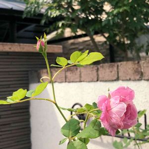 おはようございます。昨夜の台風は猛烈な風でした。関東来てこんなに強い台風は多分初めて。 薔薇も、だいぶ被害を受けていて、ポール仕立てにしているラレーヌビクトリアは、倒壊したフェンスになぎ倒されてしまいました。ポールはすぐ立て直せましたが、他のバラも花芽がかなりやられてしまっています😫 とりあえず塩害対策のため水道水で葉を洗い流しました。