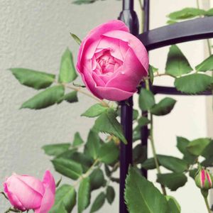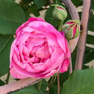 オールドローズのラ レーヌ ヴィクトリア。 毎年フェンスのキャリエールと、このアーチのラ レーヌさんが、コラボして咲き始めます。 キャリエールさんに遅れましたが、やっと蕾が見えてきました。(^-^)