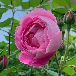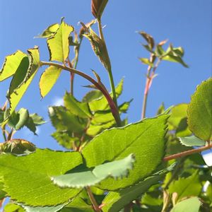 ラ・フランスの蕾も大きくなってきました。側蕾ができやすいのでまめにつむ必要があるバラです。 ポール仕立てのラ・レーヌ・ヴィクトリアは、去年は早咲きだったのに今年はスロースタート。