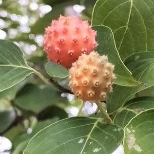 ヤマボウシ やはり「秋」ですね。 ちょっぴり色付き始め ました。 甘い実をほうばりたく なりました。 (✿☉。☉)(´-﹏-`;)💛🧡❤️