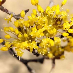 サンシュユ 春?の空に可愛いお花が 映えています。 (◕દ◕)(✿ ♡‿♡)(◍•ᴗ•◍)❤