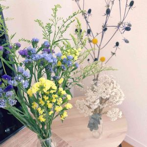 産直にお目当てのお花がなかったけど、、またまた無計画でスターチスの花束購入✨ ホワホワのグリーンがまた爽やか(=´∀`)✨キイロが効いてます✨ 今日岩手は35℃だけど、お部屋が3℃下がった気分♫ エリンジウム・ライスフラワー・クラスペディアはすでにドライです(๑˃̵ᴗ˂̵) あとからグリーンのホワホワは『ソリダコ』と教えていただきました♡感謝✨