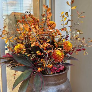 おはようございます 日曜日だと言うのに小雨が降る愛媛県松山市☂️ 昨夜は道後温泉♨️のホテルに泊まってます。 ❶帰省の前に訪れた自宅近くのおかき屋さんの「投げ入れ」 秋らしい色合わせが素敵です❣️ ❷店先にあった「小菊」 満開🌼🌼🌼