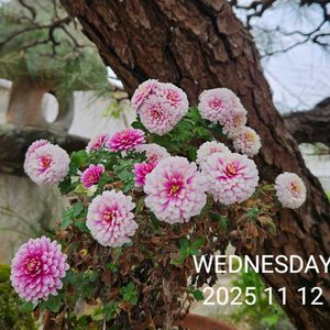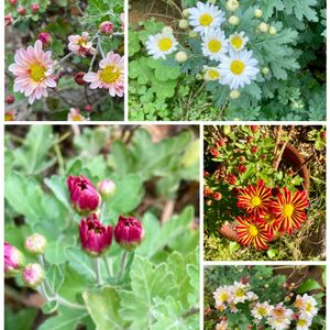 花盛りのキクで、庭が にぎわっています🎶 🧡🩷❤️💚🤍