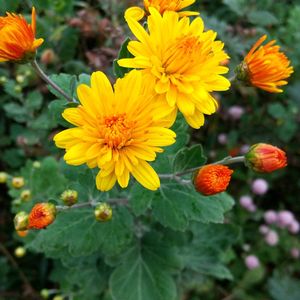 🍀🌻🪴💐🌹🌻🍀 🍀💛❤️小菊❤️💛🍀 💐菊全般の花言葉は(高貴) (高潔) (高 尚)です、これらの花言葉は、菊が 皇室の紋として用いられているこ とに由来しています 💐コギクの花言葉は(希望)と(慰め)で す 💐キク菊は、キク科キク属の植物で、 日本で観賞用多年草植物として発 展した品種群を和菊、西ヨーロッ パで育種されて生まれた品種群を 洋菊と呼びます 💐小菊は花の直径が1センチメート ルから3センチメートル、つぼみ は摘蕾(てきらい)しない (懸崖仕 立て)や(菊人形)などにします 💐小菊には ポットマム(インヤン) 黒い花心とレースのような花弁 が特徴で、花径2〜3cmの小花で 姫小菊は適切に育てれば一年中 花を咲かせ、花で葉が見えなく なるほどになることもあります 🍀🌻🪴💐🌹🌻🍀