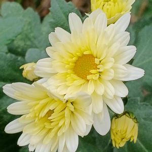11月13 曇り☁️ 可愛い白と薄黄色の菊 3㎝の花🎵6種類目 この菊は一週間位すると 5㎝位の白い菊になるの😃過程が楽しめて楽しい😃🎶
