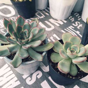 花うららとエケベリア・ペルシダ。 最初、ペルシダを花うららだと思っていましたが、緑の色味や縁の色、葉の肉厚感が全然違いますね✨ 最近、特にペルシダがお気に入り♡