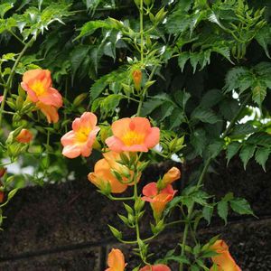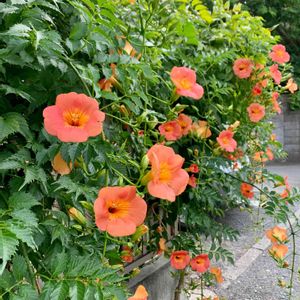 ノウゼンカヅラ🌿🧡✨ 夏の花✨✨✨ 先週末の会社帰り✨✨✨ 遠回りして散策して見つけました✨✨ 雨酷くて☔️骨董市は断念ですね😣 もはや中止ですかね。。。
