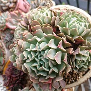 こんにちわ*ᴗˬᴗ)⁾⁾ ちょっと寒くなりました🌬 昨日はずーーっと良い夕方からの☔でしたが 思い切ってもう雨ざらし…(たんに避難するのサボっただけ) 去年の冬に比べてメチャクチャ増えてる事を実感… 冬越し簡単に考えていましたが…マズイかもです(^_^;) プレ企画の抽選ですが…姪っ子が感染症にかかり ちょっと延期になりそうです💦 もう不可能でしたら…友人に引いてもらうことにします! 抽選やりたいって姪っ子言ってるから…待ってあげたいので ほんと参加者の皆様ごめんなさい💦 もう少しお待ち下さい(。>ㅅ<。)💦sorry••• スカスカ寄植え…黄色いハズのエケちゃんも まだまだ緑子( ˘ ³˘)♥ そしてダニーにヤラれたのは痛い…