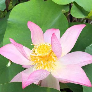 ふんわり。大きな葉っぱも美しいです。 ハスの種類は忘れてしまいました。