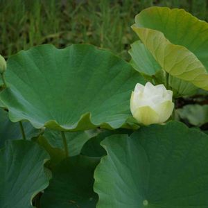 前の投稿とは別の株の花です。 開花のタイミングに上手く遭遇できず。こんな感じですが、ハスって魅力的な花ですね。