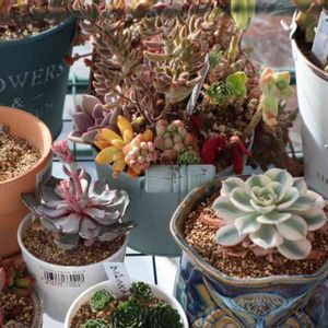 地元では有名だけれどローカルなスーパーのフラワーコーナーで見つけたアエオニウム達を連れ帰りました🤣 凍らせてダメにしてしまったサンバースト、サンバースト綴化、夕映え。 我が家に居なかった愛染錦。1鉢298円😁