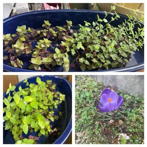 姿が乱れたカリアシアレペンスさんを剪定したときポイポイと空いてる水盤に入れて2日くらい放置😅 それなのにピン!と元気だったので少し水をはるようになり今に至ります。 上の写真の右側部分と下のものが、かれこれ2ヶ月?もっとかな経ってます。 上の左側が1ヶ月くらい前に追加でポイしたのもです。 暖かくなったら鉢植えにしようと。 とりあえず暫く天気が良くないので見合わせ中。 右下のクロッカスは掘り上げ忘れた子で1人寂しく,でも綺麗に咲いてくれました😊