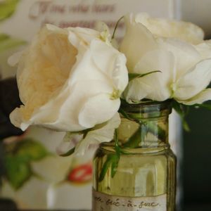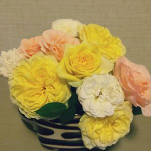 今日の花がら摘み戦果。 もう玄関前の水盤に入らないし、花瓶に生けるほど茎の長さもないので、オアシス使ってみました。 撮影時夜なので写真が暗ーい (^o^;)