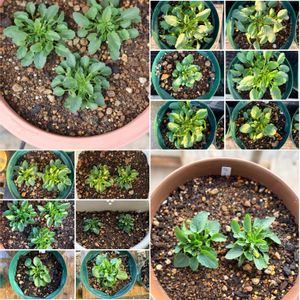 2025.11.7⛅️(5℃~15℃) 種まきビオラ ピエナミックスの鉢上げ 今年は種まきが例年より1週間程遅れた為に成長もゆっくり⏰ 株が小さいけど仕事との兼ね合いでタイミングを見計らって鉢上げ(同じ色同士植えています) 蕾を摘んでしまうと何色か分からなくなるので… 数年前の同じ時期の種まきビオラはもう沢山のお花を付け株も充実していました(2枚目) 品種にもよりますがネットで【種まきが1週間遅れると開花に1ヶ月の差が出る】というのはそうなのかもしれません😂 早ければ9月には開花が始まりますが今年は10月に入ってからやっと開花したので年内のうちに株が充実してお花が見れるのは来春かもしれません💦