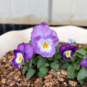このビオラさんには、アリッサムを 合わせて、簡単な寄せ植えを 作ってみよう〜と 思います❣️ ビオラは、4連苗で 売っていました、よく見る👀ビオラさんです、 名前は ビオラ ピエナ プリンと 言うらしい。。。 アリッサムのミックス苗は、都合で2つに 切って、植えることに! 4枚目 1番簡単な、寄せ植えの完成です❣️^_^