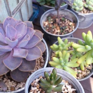 秋麗の調子が悪いので、寄せ植え(と言うより、あった子たちの寄せ集め)を解体。 四種の子、皆、おひとりさまデビュー🎵 (真ん中の縦のラインの子たちです) あ、秋麗の根元には小さい子がとりあえず😅 伸びてる秋麗、なんだか葉っぱがどんどん取れてしまって、いっそちょんぱの方がいい❓ しばらくは様子見、大きくなって暴れてほしいなあ……。