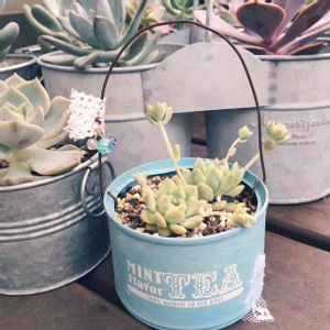 『プロリフェラ』 去年外に投げていて、生きてくれてた子がこの子と気付かず(その子はやけにまん丸だったので……まだ地面にいます)、6月23日連れ帰る。 子持ち蓮華も形似てない❓ このぴょーんと伸びる子、大好き💗 ひとり分けて、雨ざらしで試しているけど、こちらの子より元気かも❓ さっきやっとこさ完成した初リメ缶に植え替えてみた🎵 あまり可愛くできなかったけど、楽しいかも〜🎵 ステンシルやってみたいなあ。