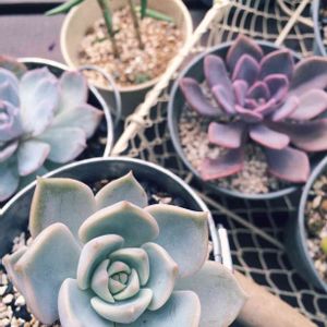 これがほんとの『白牡丹』 皆さんの投稿を見てからずっと気になっていて、実物もやっぱり美しかった❗️ 7月3日仲間入り。 こんなに美しいのに、葉が取れて形悪くなっちゃった💦 徐々に慣らして……元気なのかそうじゃないのか今ひとつ分からなくて、定位置も決まらず、お水だけ断っている。 寄せ植えしたいなあと思いつつ、ひとりひとつの鉢をいくつも並べているだけでも可愛くて、満足🎵