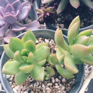 『デビー』 6月3日仲間入り。 管理のミスで葉っぱ取れて形が悪くなるものの、直射日光の元、元気いっぱい(多分……) 葉っぱ取れちゃったあたりからこっそり子供らしき子、しかしなかなか大きくならない。 今はあまりお水をあげていない。 色が好き🎵
