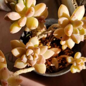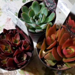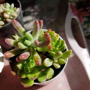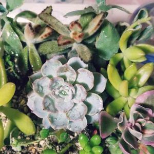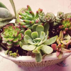 寄せ植えしてみました🎵 小さな鉢を少なくするために? お日様に当てるためにベランダに出したり、室内に入れたり大変なので。 エケベリア属のサプセシリス 銘月 月兎耳 胡蝶の舞錦 ファリナセア錦 虹の玉