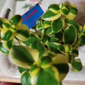 記録用に クラッスラのサルメントーサ🎶💚 緑とクリームの葉が綺麗❤️